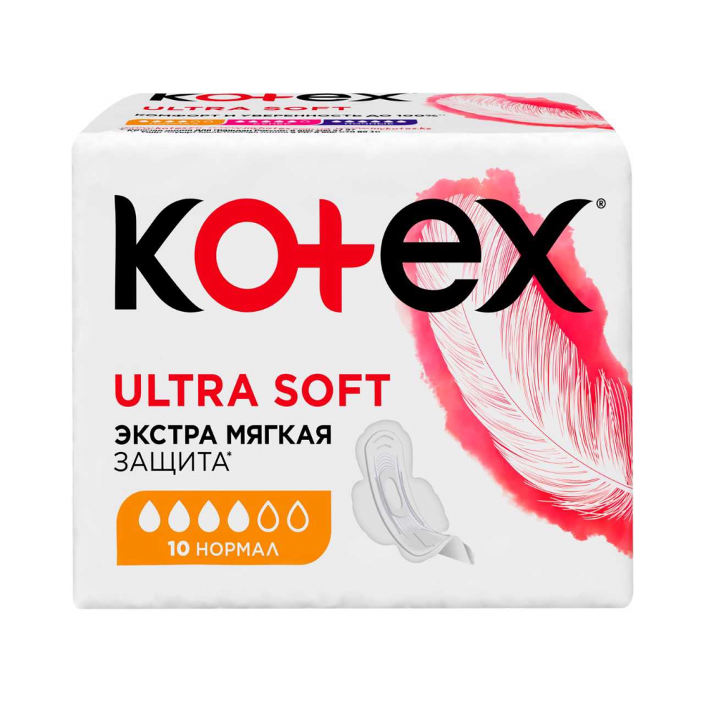 Жаңартылған әйелдер гигиеналық жастықшалары Kotex Ultra Soft НОРМАЛ орташа бөлінулер үшін. Комфорт пен сенімділікті 100% дейін қамтамасыз етеді**. Жақсартылған қорғау және жаңа дизайн. ЭКСТРА ЖҰМСАҚ ҚОРҒАУ* • Экстра жұмсақ жоғарғы қабат және ерекше сіңіргіш 3D орталық жұмсақ және жайлы қорғауды қамтамасыз етеді • Иілгіш ойықтар – жастықшаға артқы жағынан ағып кетуден қорғау үшін икемділік береді • Жұмсақ қанаттар, киімге қатты бекітіліп, теріні қырмайды • Жастықшаның эстетикалық формасы мен нәзік әйелдік дизайны пайдалануда рахаттануға қосымша әкеледі • Жаңартылған қаптама дизайны – стильді және заманауи Жұмсақ қанатшасы бар қаптаманы таңда! *Kotex Ultra жастықшаларымен салыстырғанда **Kotex® пайдаланып көрген 135 респонденттің 70%-ының пікірі бойынша (Ресейдегі сауалнама, 2016 жылғы қыркүйек)