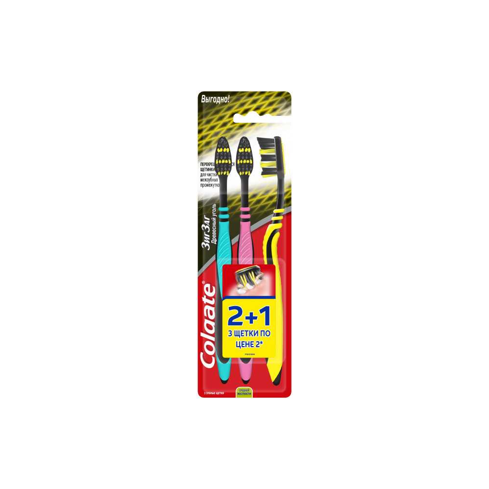 Щетка зубная Colgate Древесный уголь 2+1 средней жесткости шт