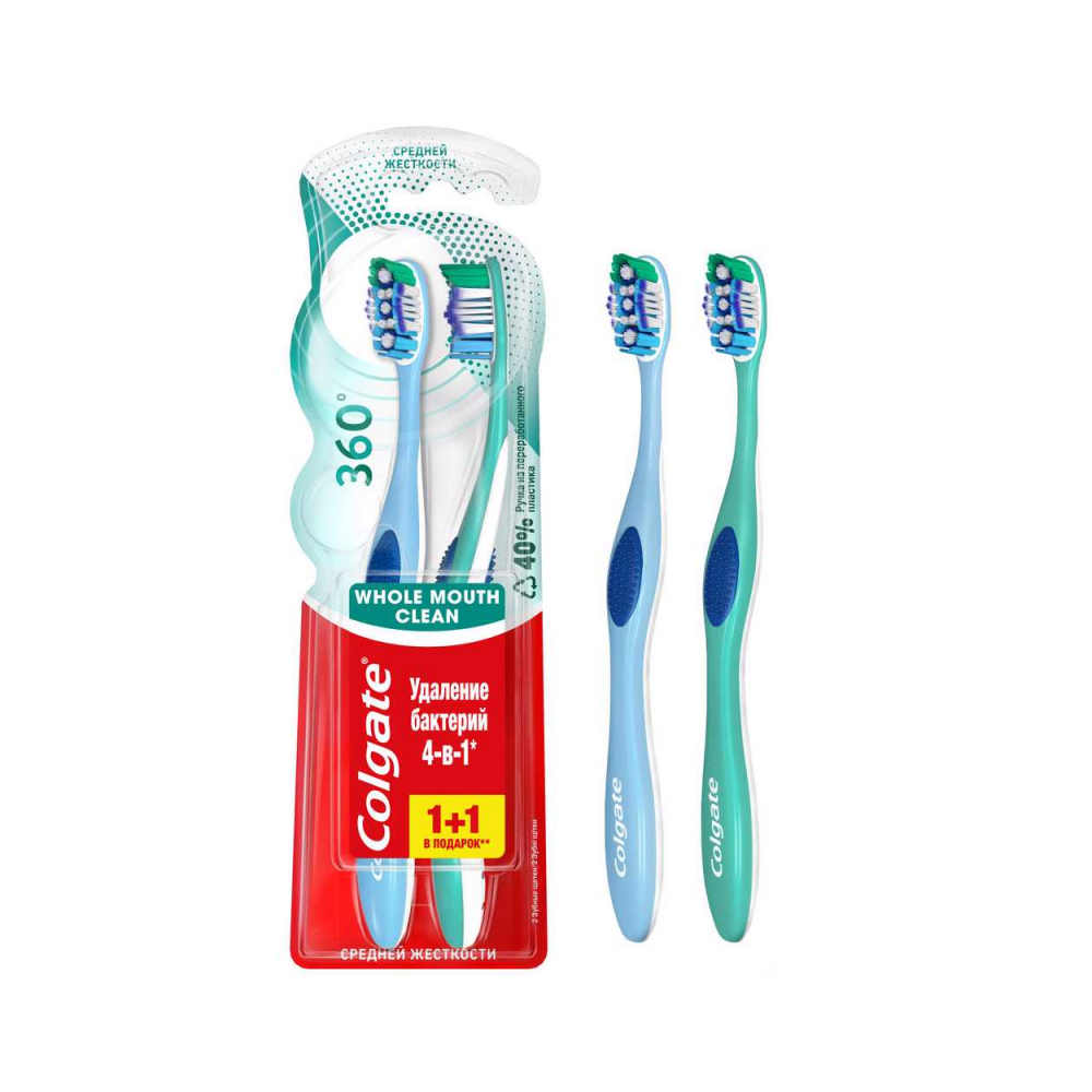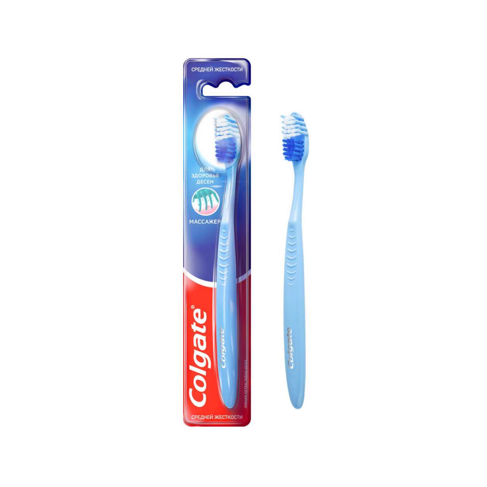 Көпфункциялық тіс щёткасы Colgate Классика Здоровья, орташа қаттылықта, әр түрлі деңгейдегі щетинамен тіс арасындағы тамақ бөлшектерін жояды. Тіл тазалау үшін арналған жастықша жағымсыз иіс тудыратын бактерияларды жоюға көмектеседі.